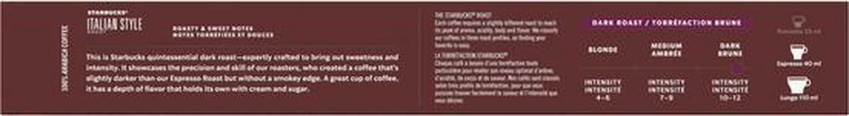 Geniet nu thuis van de Starbucks® koffie die bij jou past. Intens met een rijk en diep profiel met tonen van gekarameliseerde suiker, deze donkere Italian Style Roast heeft een diepe smaak die z’n weerga niet kent. Intens en geroosterd.