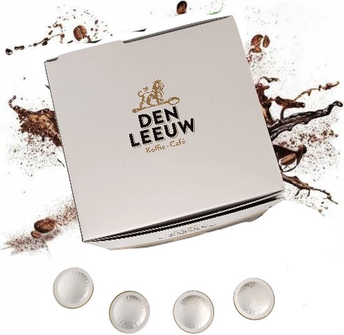 Doos met 80 koffie capsules Rainforest A Certified 70% minder milieubelastend en natuurlijk maatschappelijk verantwoord. Zeer mooie handige dispenser met Den Leeuw capsules voor bij uw koffiemachine.
