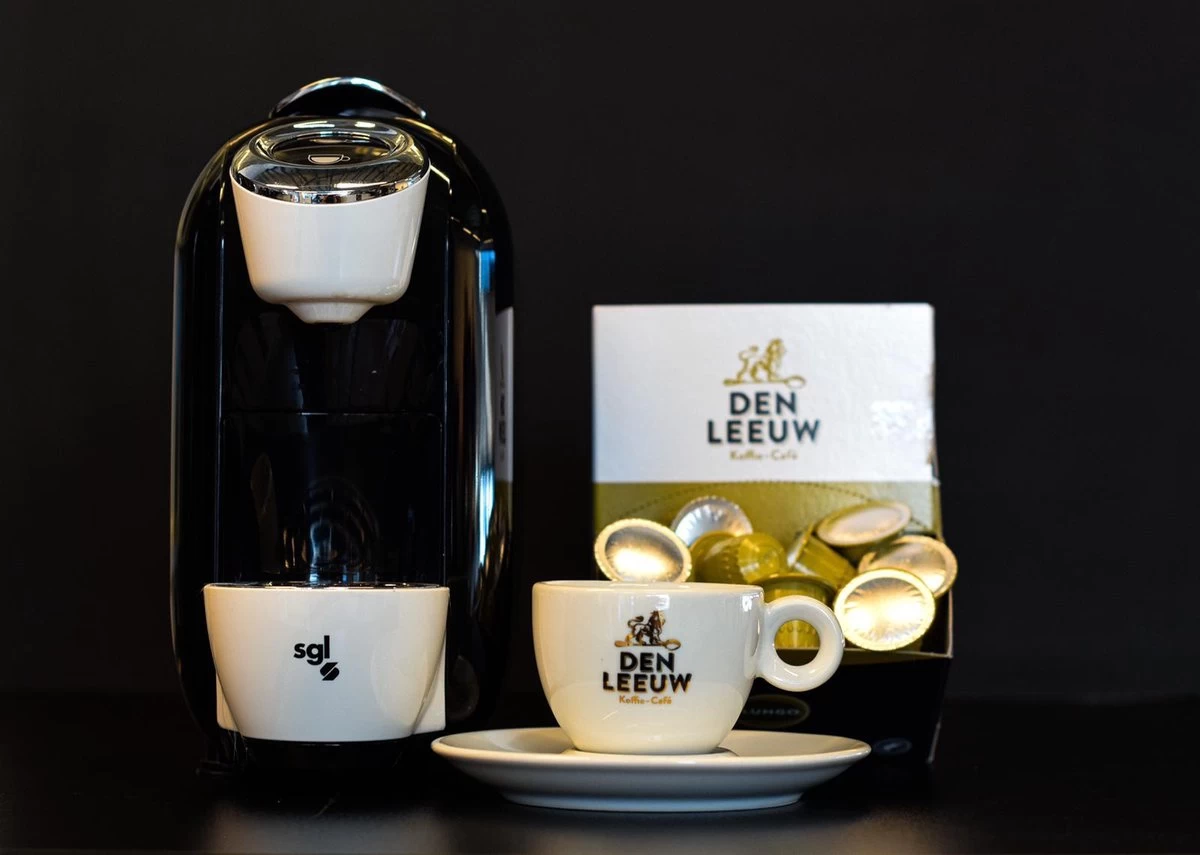 DEN LEEUW LUNGO KOFFIECUPS – Nespresso capsules – 80 capsules in dispenser.